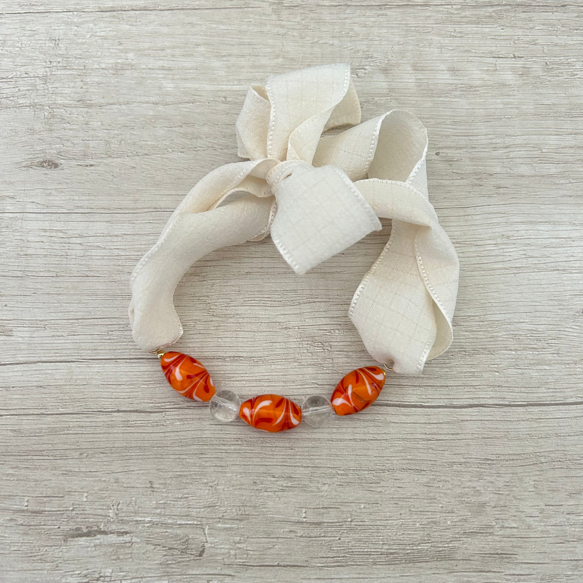 Tres piezas de cerámica con mostacillas de cuarzo con cinta