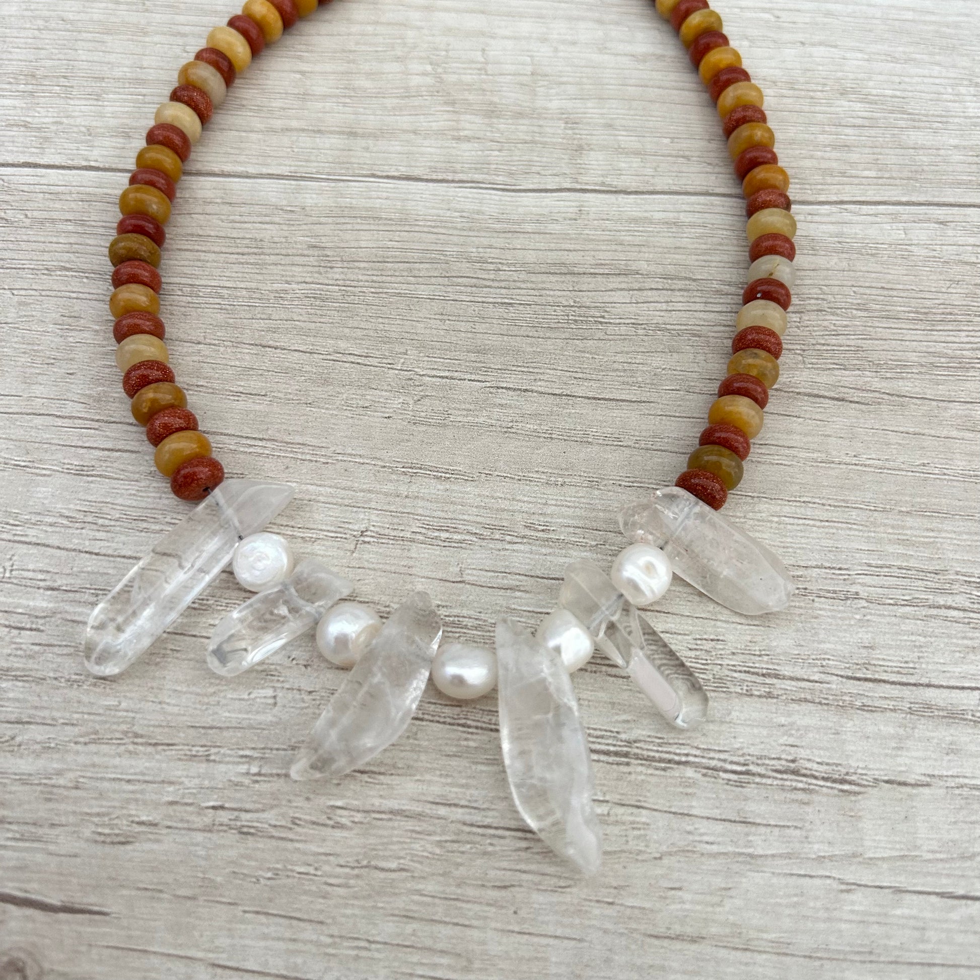 Collar de piedras naturales (Jaspe y cuarzo) con Perlas naturales de río