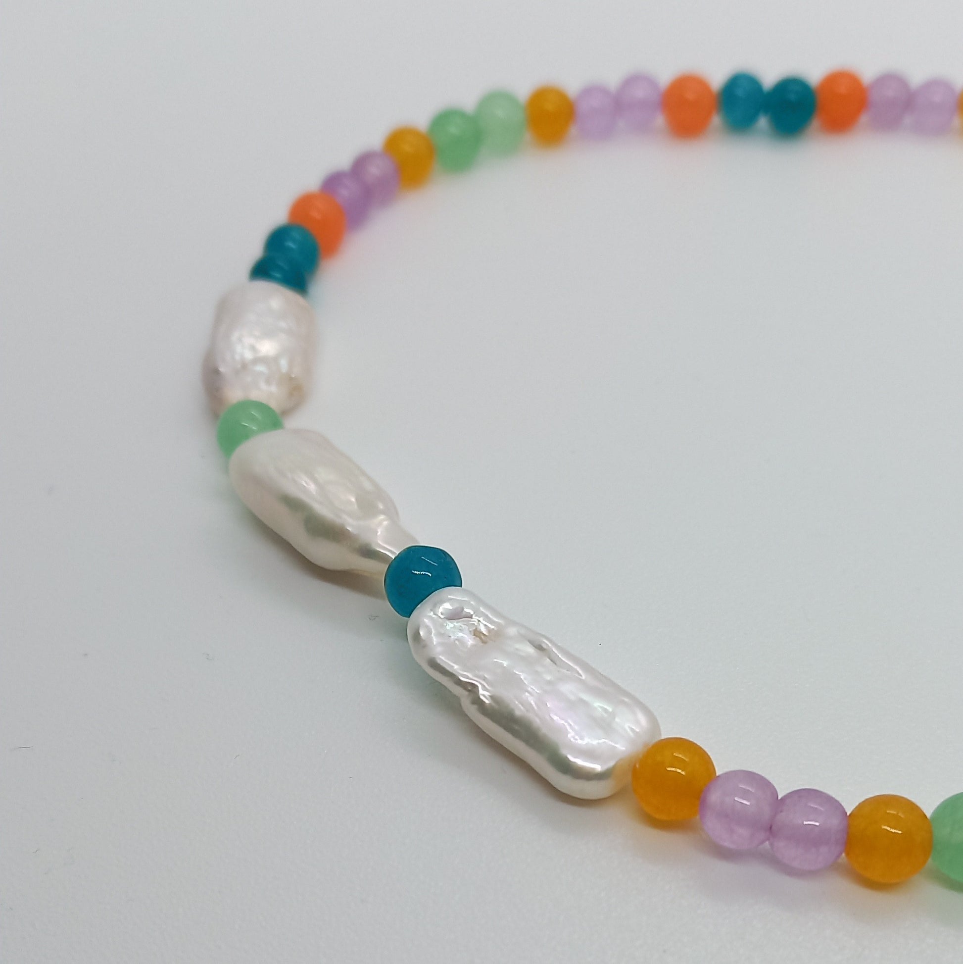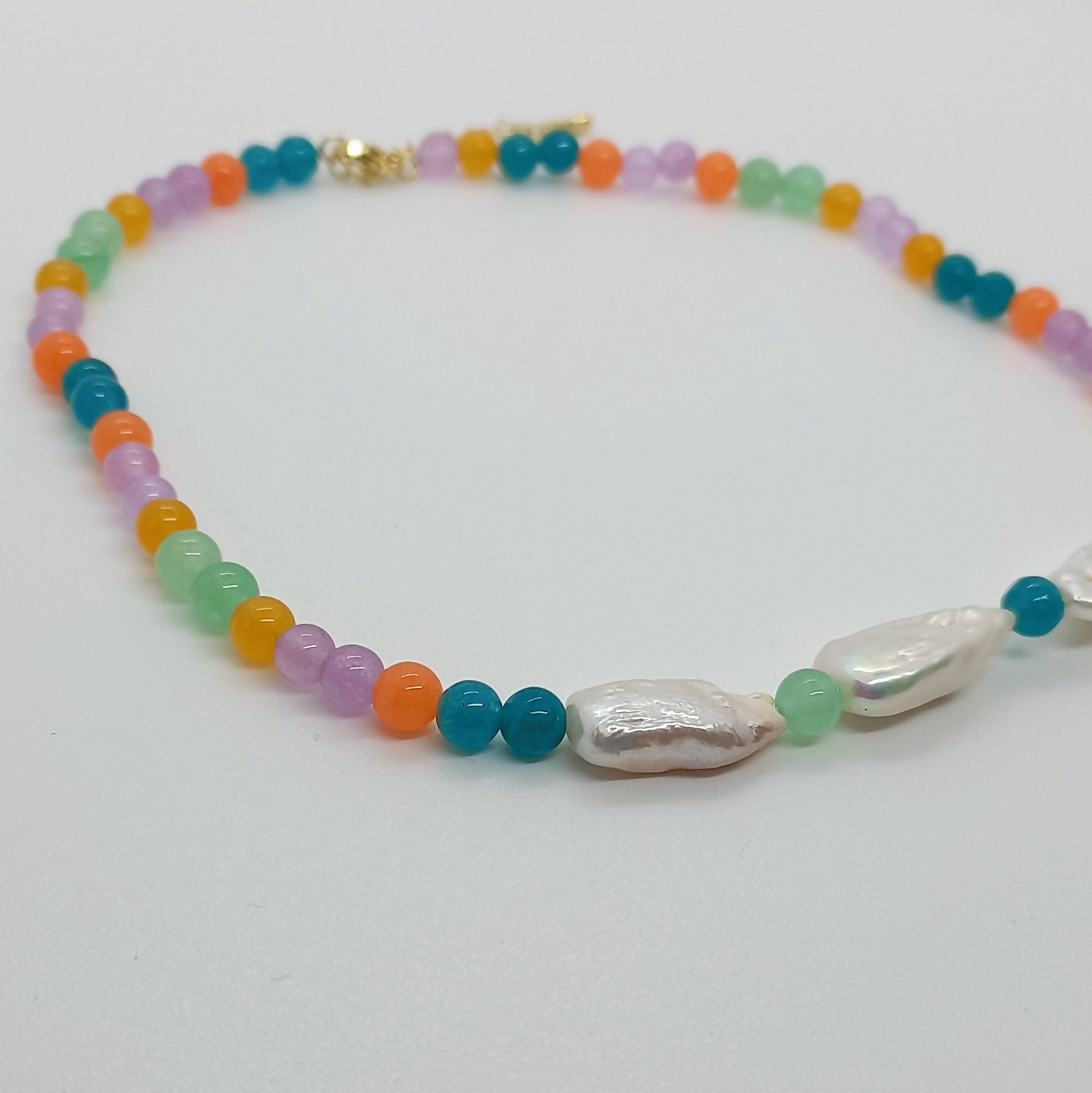 Collar con cristales de colores y perlas irregulares naturales. Increíble para este verano!