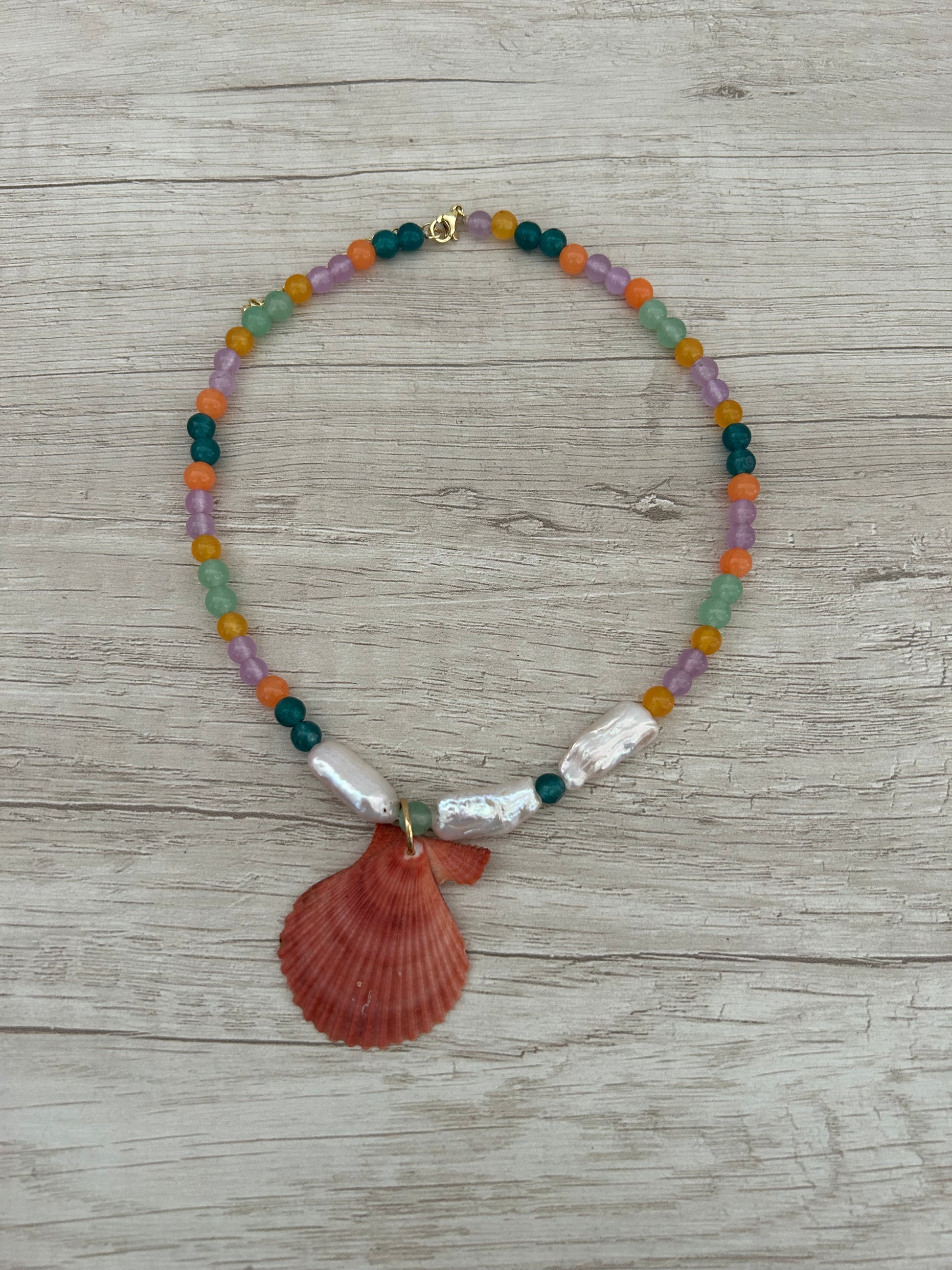 Collar con cristales de colores, Perlas irregulares naturales y colgante de concha